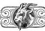 Defending MamaA young goat appears to be protecting his mother from a barking dog in this free vintage drawing. |