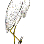 American EgretVintage drawing of a large white bird that the naturalists once called the American egret. Sadly, its lovely tail feathers may have been its downfall. |
