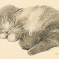 A wonderful drawing of a cat that could represent dreaming of greatness. Anyone looking for pictorial metaphors using animals should consider using this charming pencil drawing of a cat gazing up at a lion statue. This is another great, super-cute cat drawing from Oliver Herford.