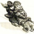 A frozen pond or lake offers so much fun. Dig out the sleds and skates and it’s time to have great fun gliding and sliding. This charming Ida Waugh (1846-1919) drawing from 1892 captures that feeling perfectly.